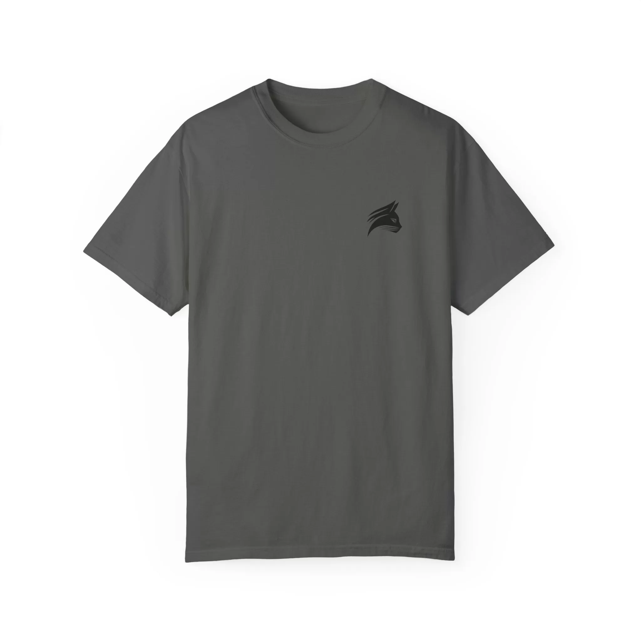 A modern and minimalist cat head design T-shirt, perfect for cat lovers looking for a stylish and unique addition to their wardrobe. This unisex garment-dyed T-shirt offers a relaxed fit and comfort for casual or semi-formal settings.