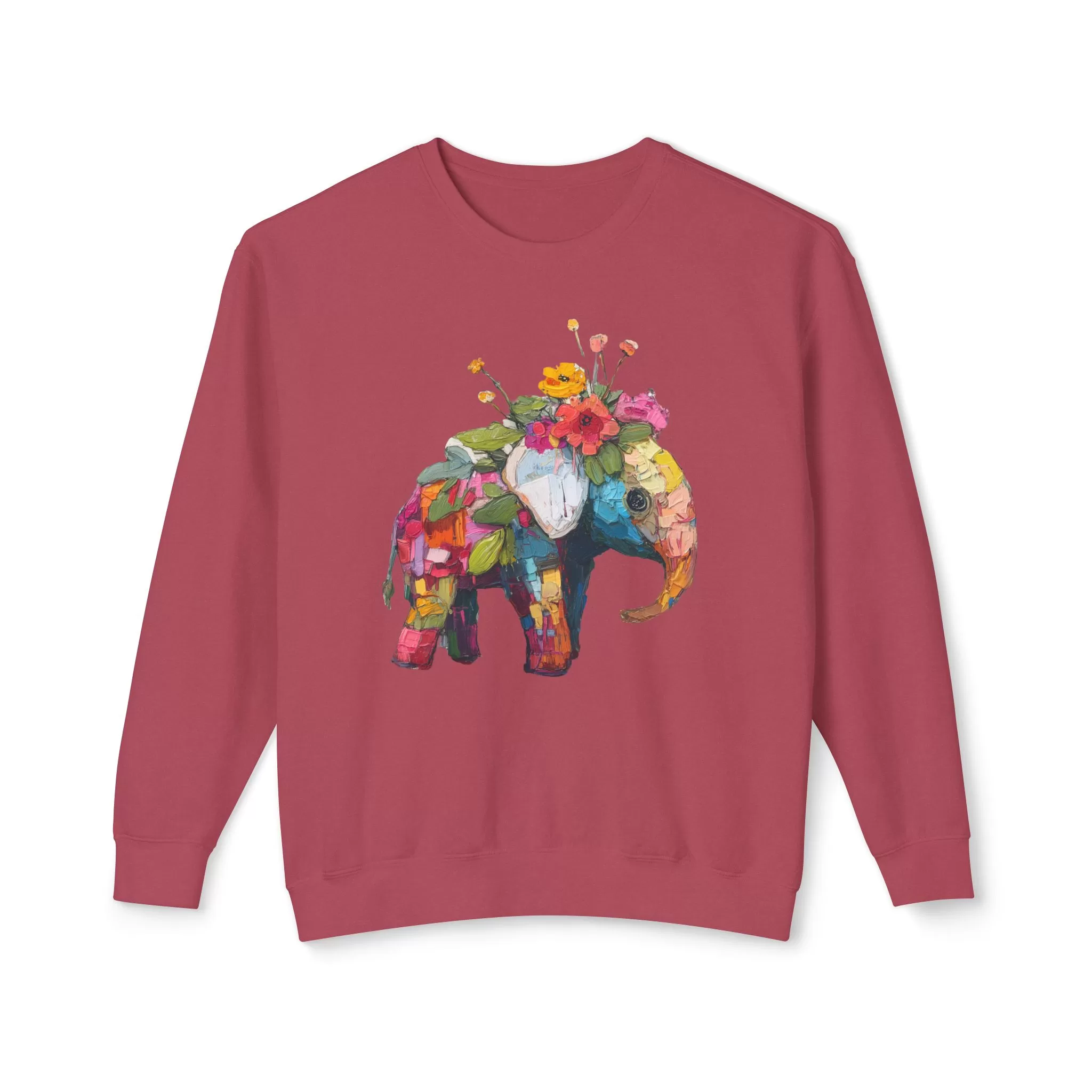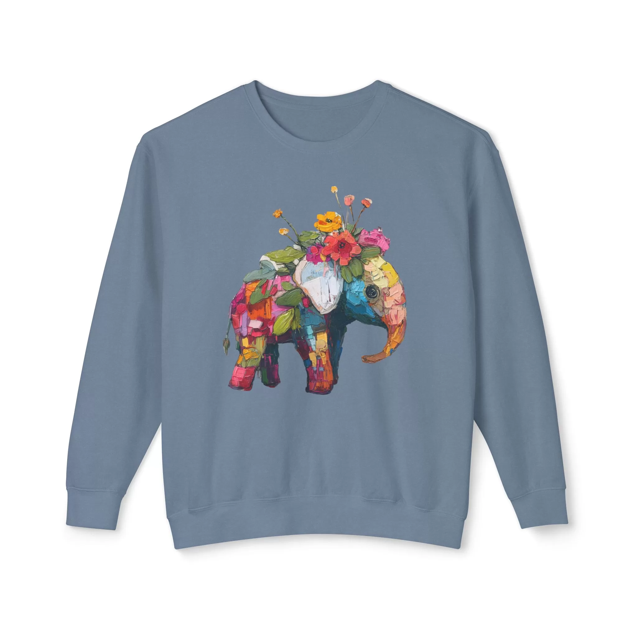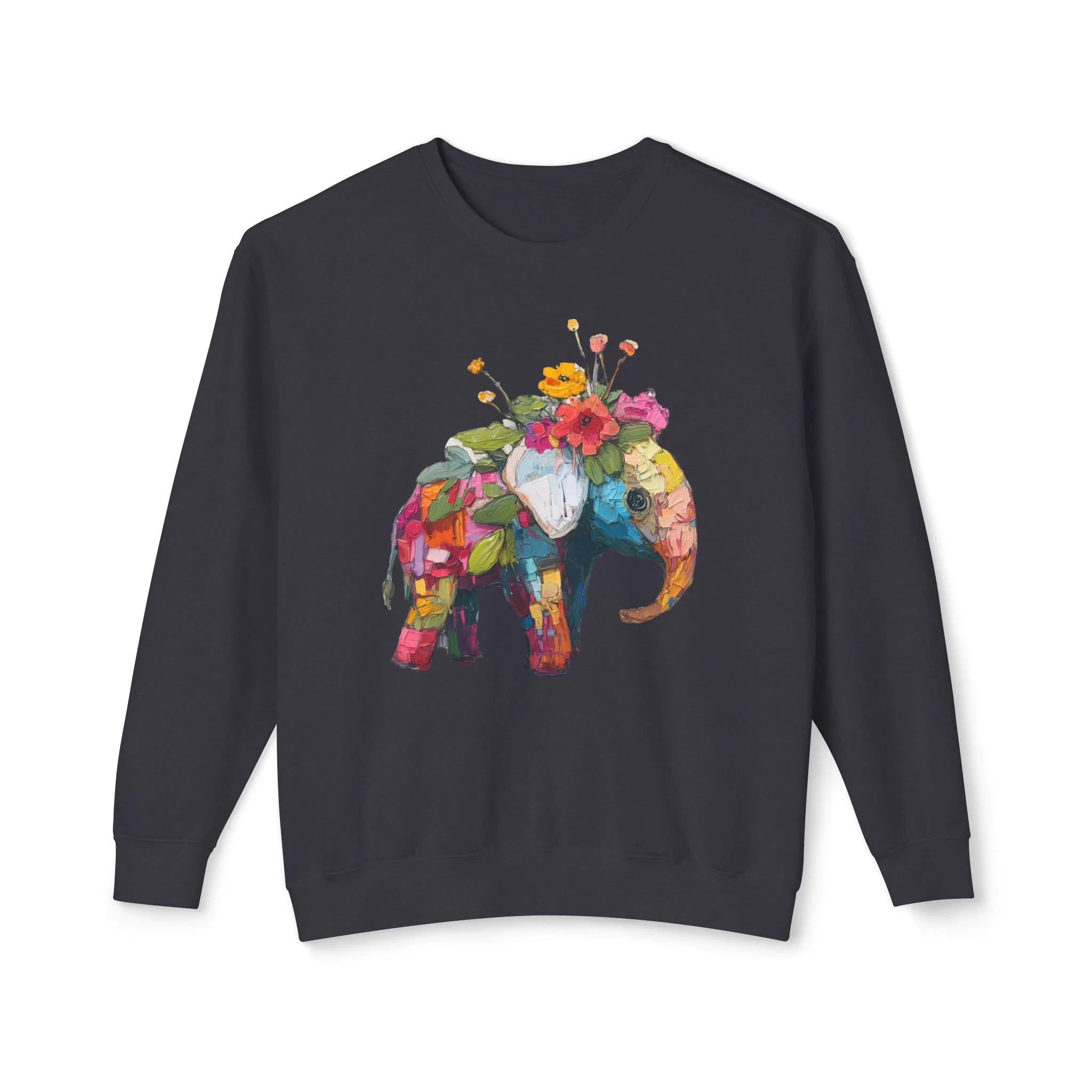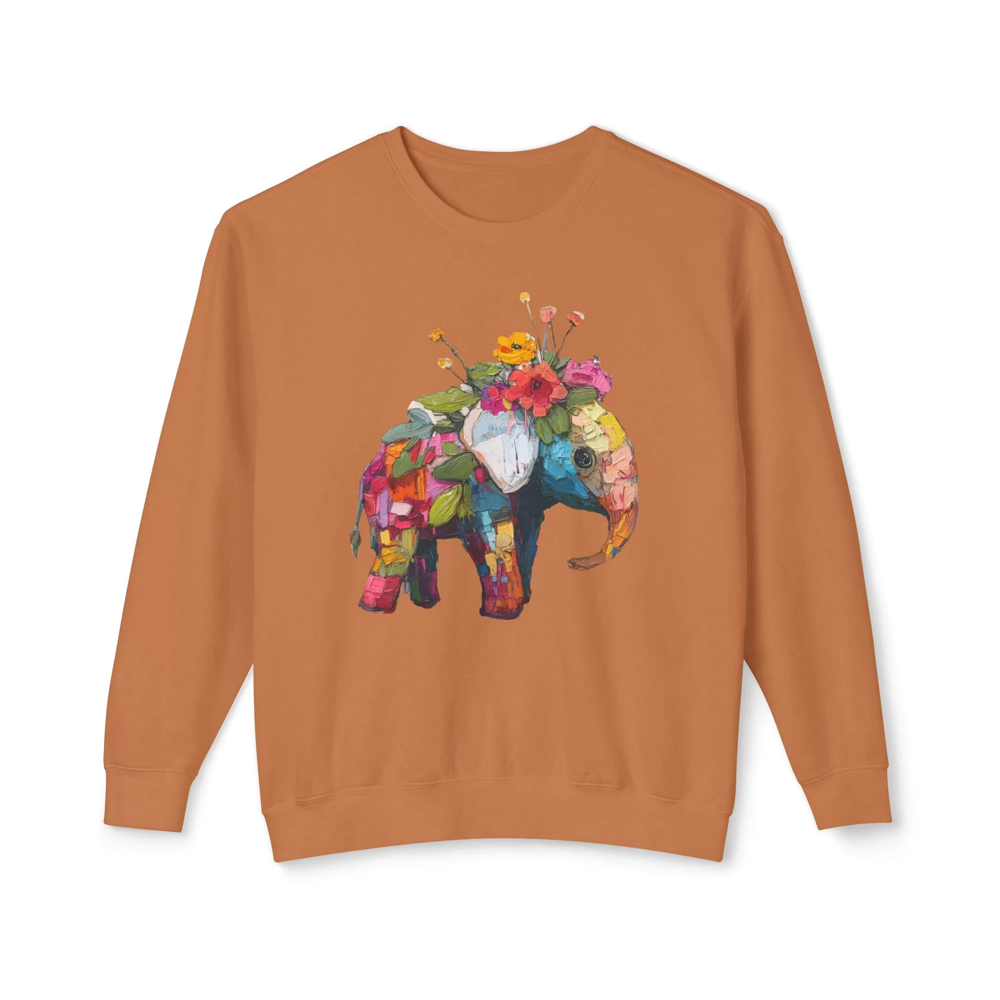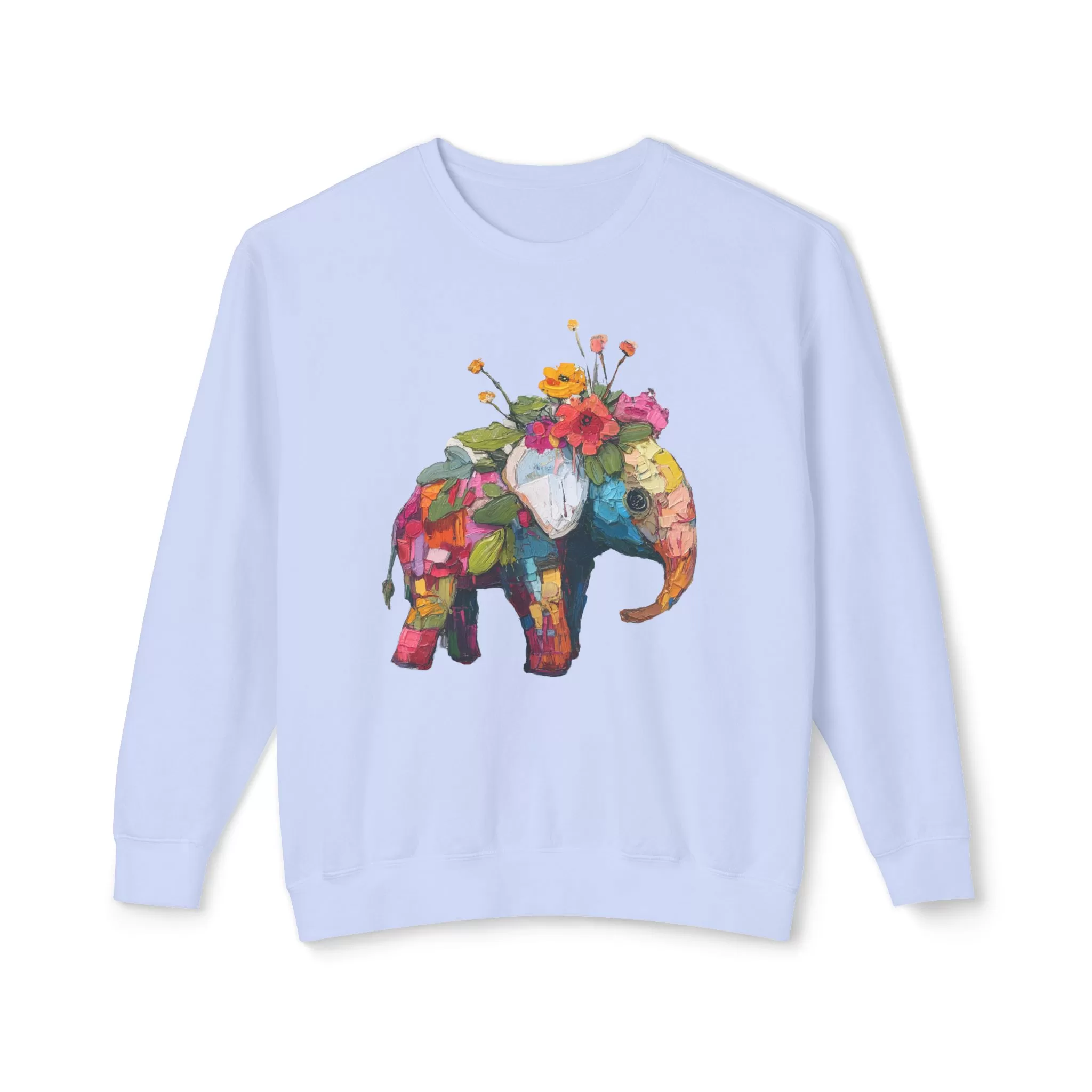 This Elephant oil paint floral sweatshirt exudes a calming and artistic vibe, perfect for nature lovers and art enthusiasts. It is ideal for casual wear and can be worn during cozy evenings or outings. This sweatshirt is relevant to holidays such as Earth Day and occasions like art exhibitions.